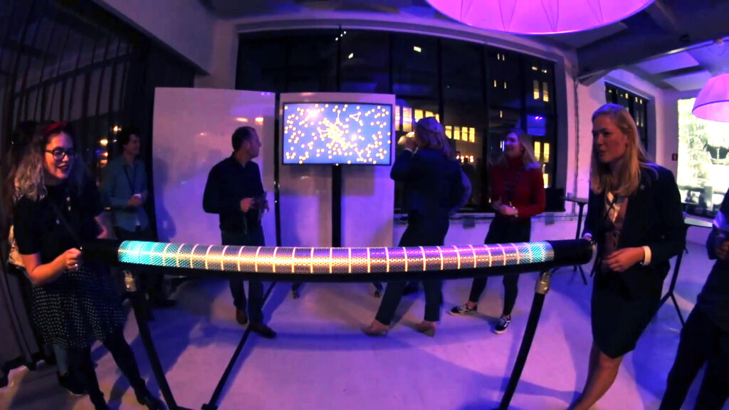 Gary is an interactive lighting installation designed for networking events, enabling participants to connect with each other without using business cards. Instead, connections are formed through a more enjoyable, interactive, and intimate experience. Using capacitive sensing, participants who wish to connect can interact directly with the installation. First, they scan their visitor badge, and then physically bring the interactive lights closer to each other until their lights merges together. This action creates a new connection within the visualised network and initiates data transfer through a personalised email containing their contact details. Gary enhances the networking experience by providing an engaging interaction, thereby making networking less awkward and more fun.