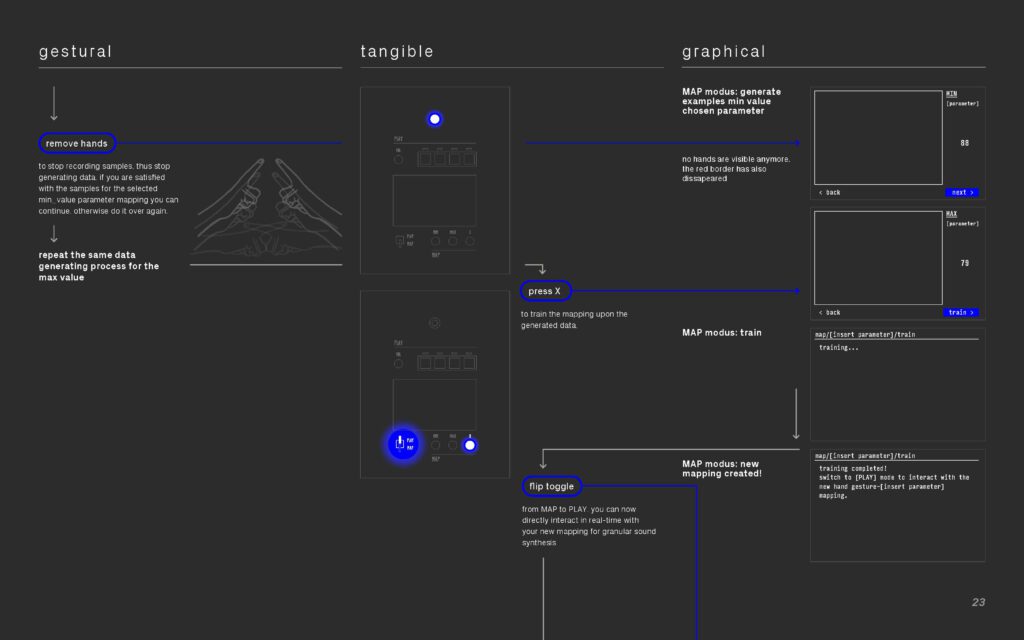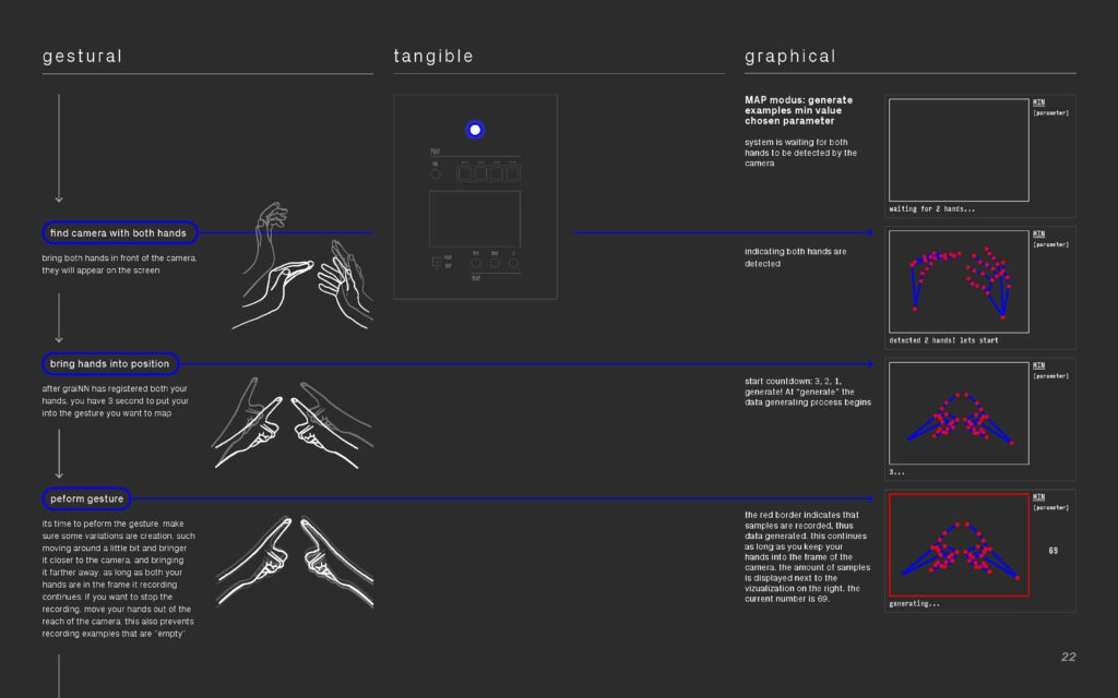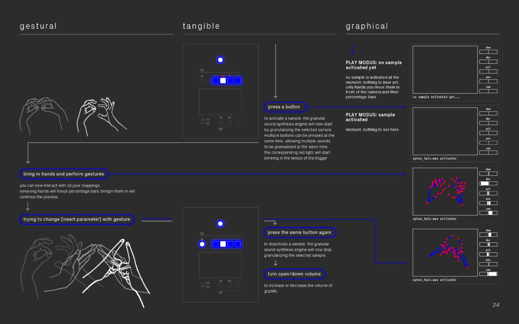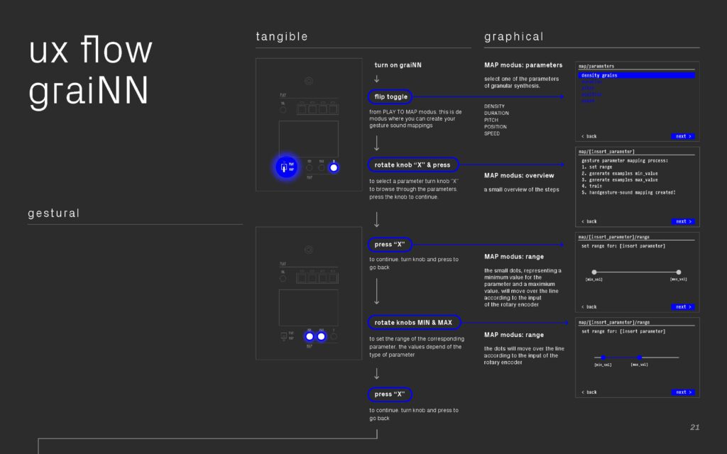 graiNN is a music instrument for granular sound design that uses interactive machine learning to create gesture-sound mappings. graiNN allows musicians to craft electronic granular sounds through iteratively specifying unique hand gestures as input and their associated granular synthesis parameters, while training the system in the [map] modus. After the training has completed, musicians can directly interact with a newly learned mapping for real-time control of the granular sound synthesis engine in the [play] modus. Instead of using machine learning for making music easier, graiNN aims to create novel ways for exploration, synthesis, and engagement with electronic musical instruments.